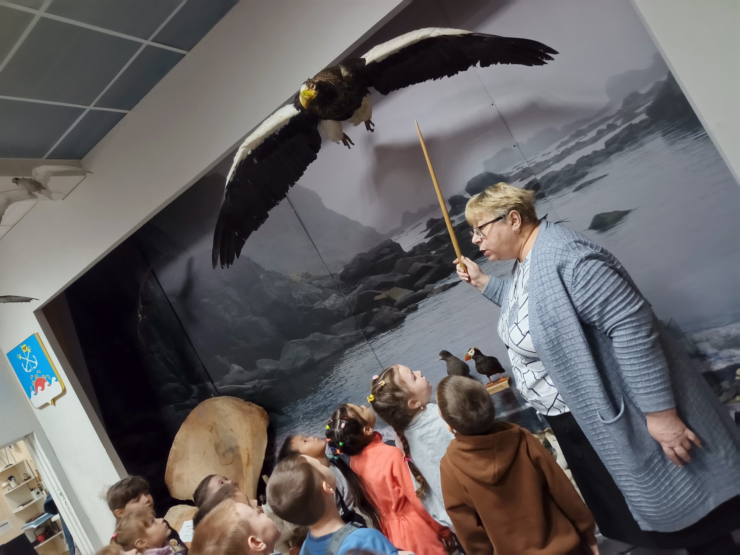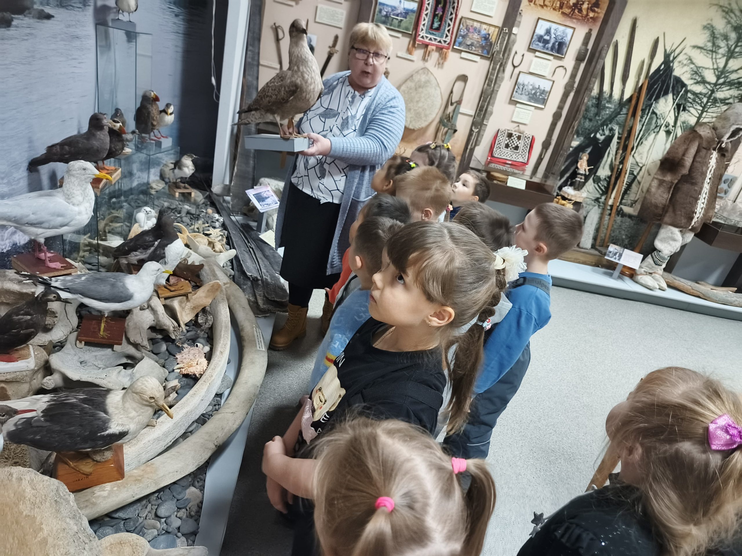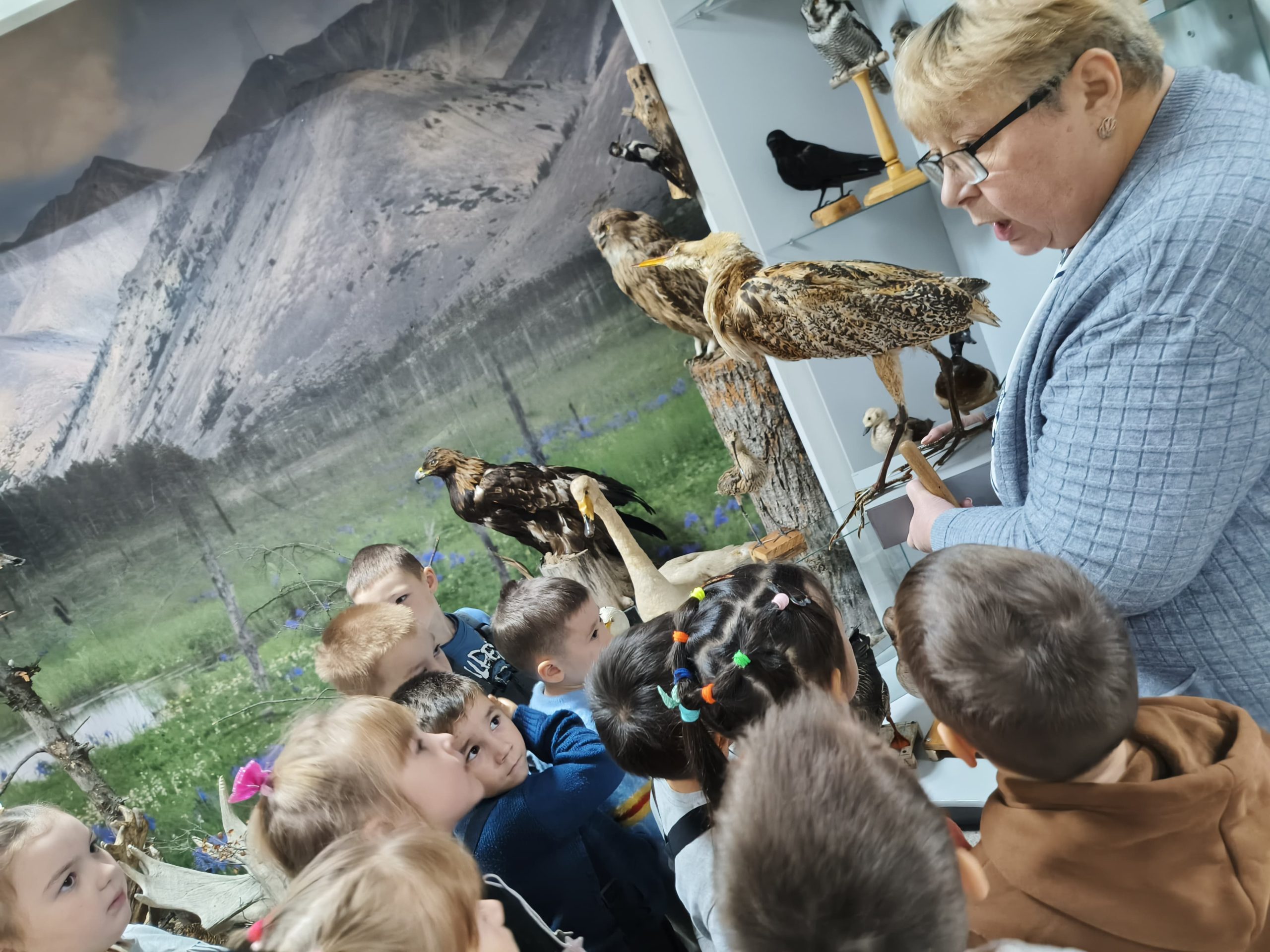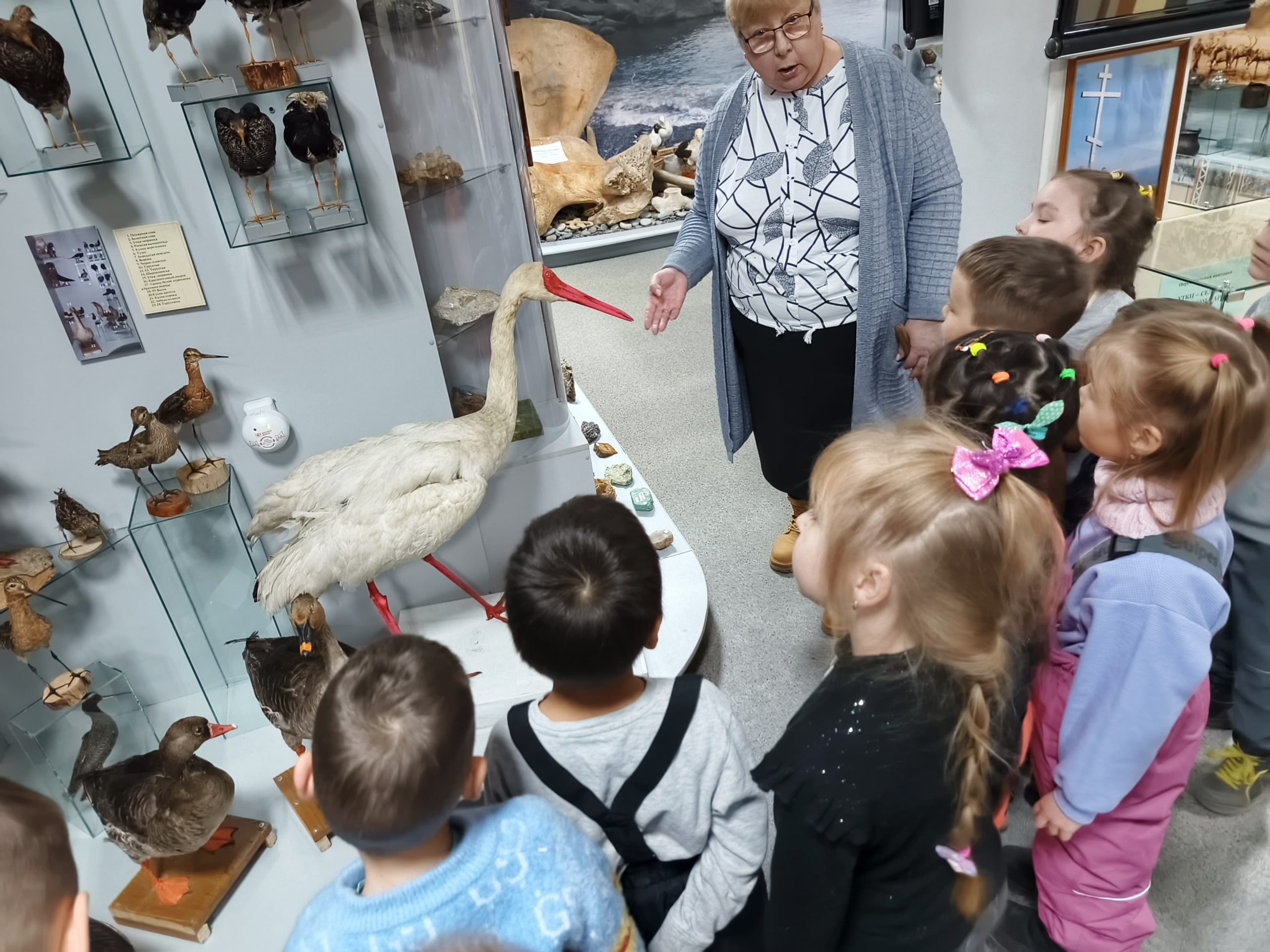 Экскурсовод Елена Золотова познакомила  воспитанников детского сада «Ромашка» с чучелами птиц, рассказав о повадках, образе жизни и местах обитания разных видов чаек, уток, гусей, лебедей, турухтанов, чирков, сов, бекасов. Ребята увидели, что в музее много разнообразных птиц. Малыши внимательно слушали, задавали вопросы, делились своими наблюдениями.